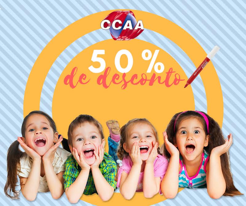 O CCAA está concedendo 50% de desconto no primeiro semestre do curso para novos alunos entre 6 e 11 anos. Do segundo semestre do curso em diante, até o fim de seus estudos, os alunos terão até 30% de desconto, de acordo com a tabela de convênios da escola. Uma excelente oportunidade para investir no futuro de seu filho.