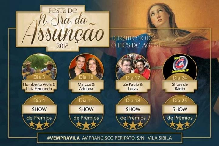 O mês de agosto é marcado pela tradicional Festa de Nossa Senhora da Assunção 2018, está promovida pela Paróquia de mesmo nomes localizada no Bairro Vila Sybilla.