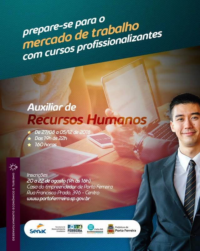 Prefeitura Municipal de Porto Ferreira, em parceria com o SENAC, oferecerá cursos gratuitos de: Depiladora (16 vagas) e Auxiliar de Recursos Humanos(30 vagas).