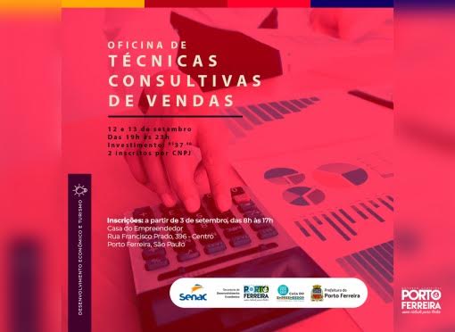 A Prefeitura de Porto Ferreira, por meio da Secretaria de Desenvolvimento Econômico e Turismo, em parceria com o Sebrae-SP e o Senac vão realizar a Oficina de Técnicas Consultivas de Vendas.
