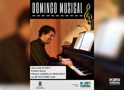 Desta vez, o músico ferreirense Willian Storti vai abrilhantar a tarde de domingo com seu show de piano solo.