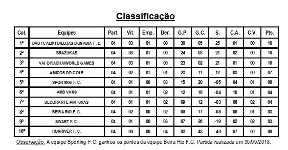 Segue firme o Campeonato Primavera 2018 de futebol society do PFFC acompanhe os resultados e a próxima rodada