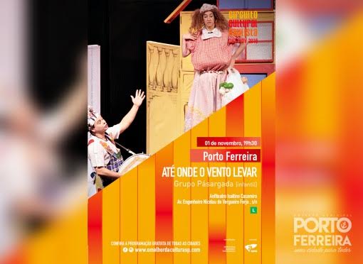 Porto Ferreira recebe mais uma atração do Circuito Cultural Paulista na próxima quinta-feira (01/11), véspera de feriado, às 19h30, no Anfiteatro Isaltino Casemiro. Trata-se do espetáculo infantil “Até Onde o Vento Levar”, do Grupo Passárgada. A entrada é gratuita.