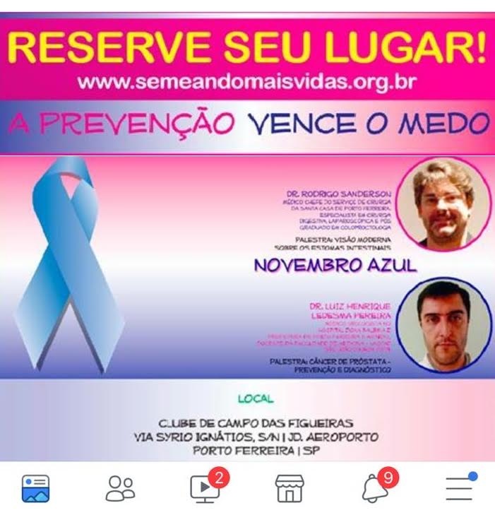 Em comemoração aos mês Novembro Azul, a ONG Semeando Mais Vidas traz a Porto Ferreira uma Palestra denominada " A Prevenção Vence o Medo"