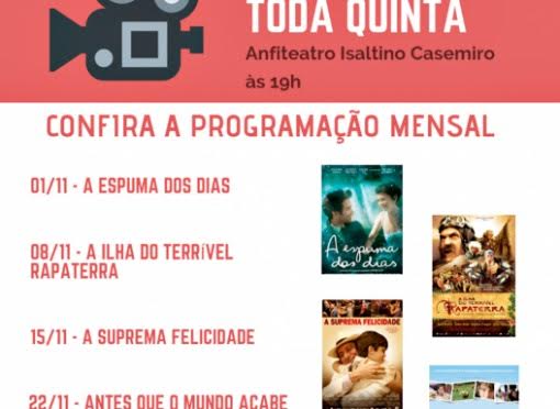 As sessões acontecem todas as quintas-feiras, a partir das 19 horas, no Anfiteatro Isaltino Casemiro, com entrada gratuita.
