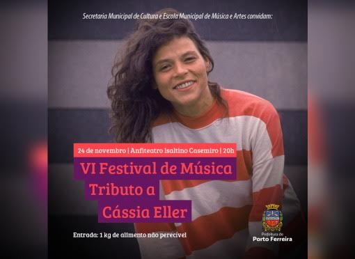 O primeiro acontece neste sábado (24/11). Trata-se do VI Festival de Música, que este ano terá como tema o trabalho da cantora Cássia Eller. A apresentação será no Anfiteatro Isaltino Casemiro, a partir das 20 horas. O ingresso é 1 kg de alimento não perecível.