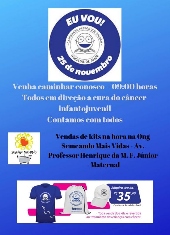 A ONG Semeando Mais Vidas realizará amanhã, domingo, mais uma edição da "Caminhada "Passos que Salvam", com o objetivo de divulgar a importância do diagnóstico precoce do câncer infanto-juvenil em Porto Ferreira.