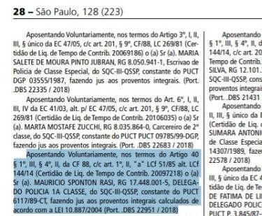 No último dia 01/12 foi publicado no Diário Oficial do Estado de SP o despacho oficializando a aposentadoria do ex-delegado de Polícia de Porto Ferreira Dr. Maurício