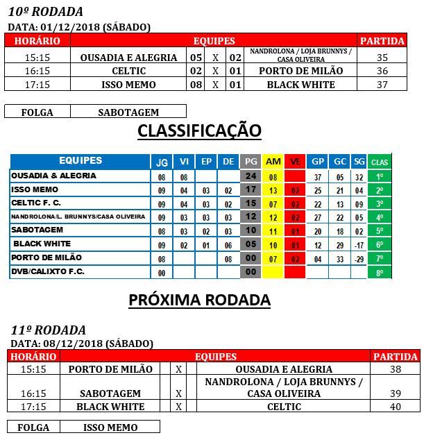 No sábado (01/12) foi realizada a 10ª rodada da 8ª Copa de Futebol Society do Clube de Campo das Figueiras.