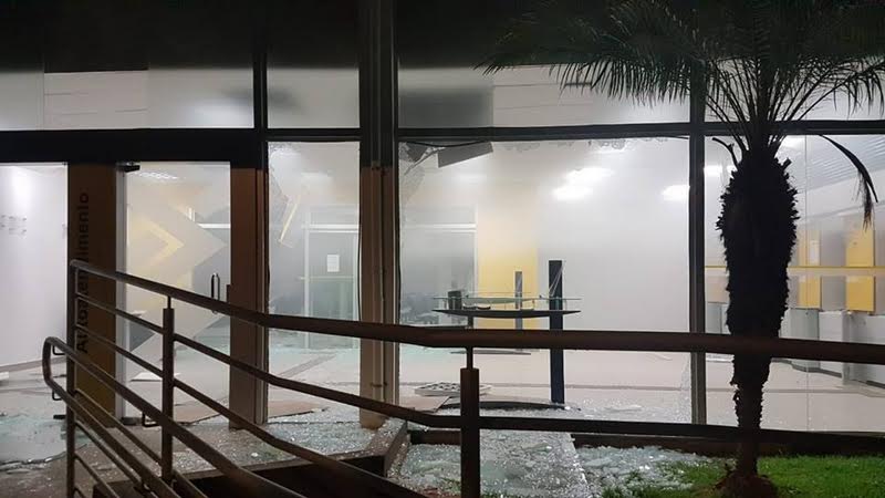A ação iniciou por volta das 3h e durou aproximadamente 30 minutos. As vidraças e parte do teto dos bancos Santander, Banco do Brasil e Caixa federal ficaram destruídas.