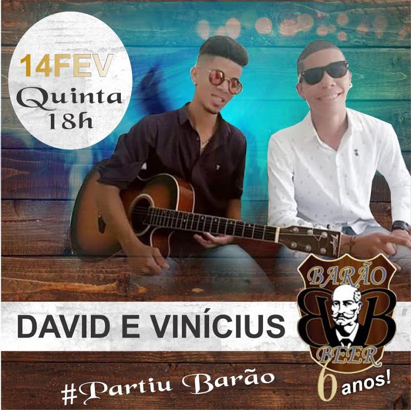 Quinta-feira 14 de Fevereiro, David e Vinícius a partir das 18h00