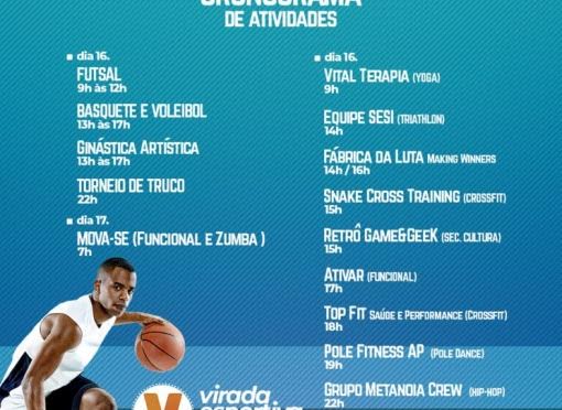 A Secretaria de Esportes e Lazer realiza no final de semana, dias 16 e 17 de fevereiro (sábado e domingo), a Virada Esportiva 2019.