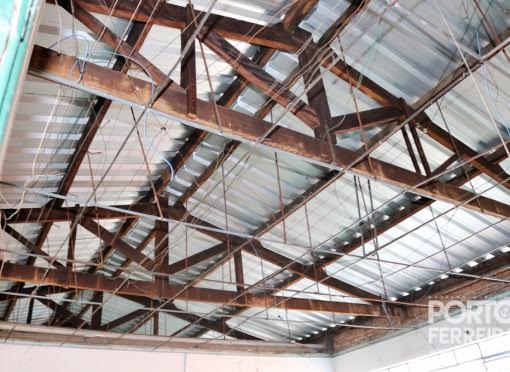 Nesta terça-feira (19/02), servidores da Secretaria de Infraestrutura, Obras e Meio Ambiente da Prefeitura de Porto Ferreira encerraram o serviço de retirada da rede elétrica danificada e dos forros da área interditada da EMEFM Mário Borelli Thomaz, no Centro.