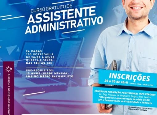 A Prefeitura de Porto Ferreira, por meio da Secretaria de Desenvolvimento Econômico e Turismo, em parceria com o Senac, vai abrir inscrições para o curso de Assistente Administrativo.