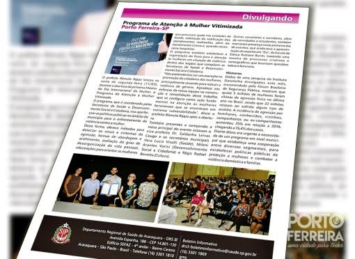 O Programa de Atenção à Mulher Vitimizada lançado em Porto Ferreira no mês de março foi destaque na edição de março do Boletim Informativo da Secretaria de Estado da Saúde – Departamento Regional de Saúde (DRS III – Araraquara).