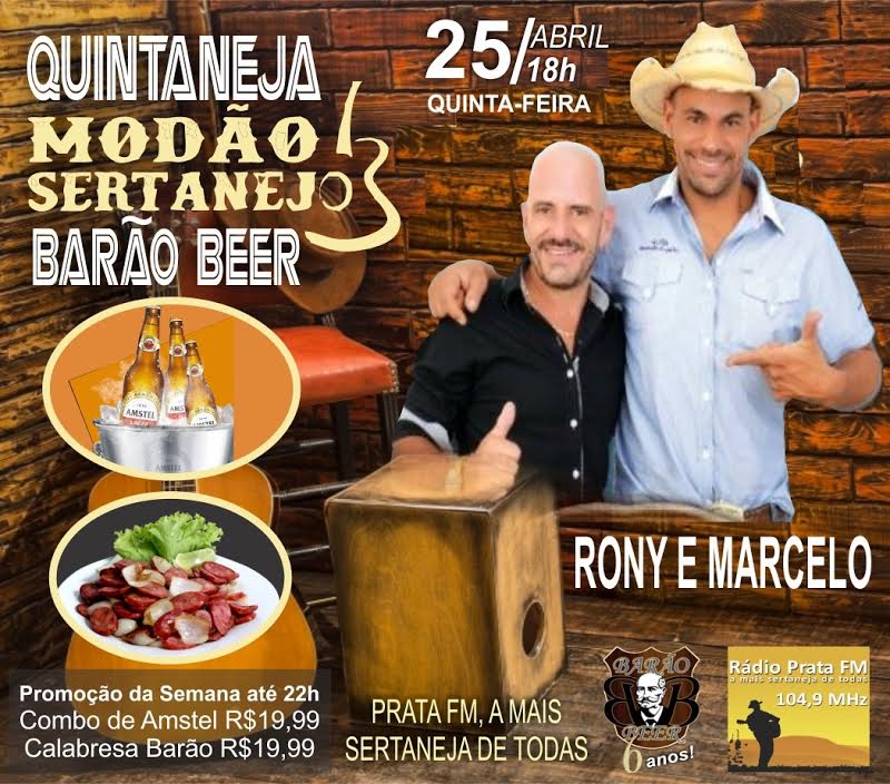 Hoje quinta-feira 25-04 Rony e Marcelo aninando o happy hour com modão a partir das 18h00.