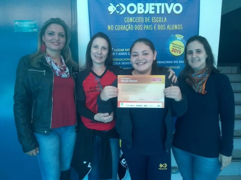 Os alunos Vinicius Canalli, Isaac, Vinicius Xavier , Julia, Eduarda, Giovanna, Luiza, Vitor Hugo e Flávia conseguiram a classificação para a segunda fase e receberam de certificado de Menção Honrosa.