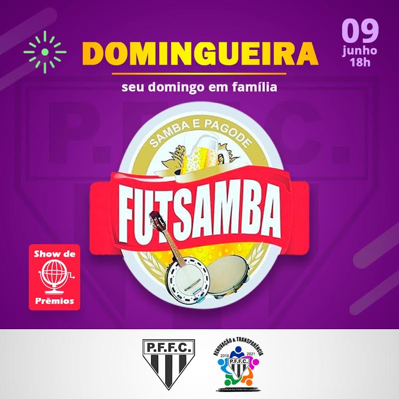 O P.F.F.C. realizará hoje domingo 09 de Junho de 2019 Domingueira " Seu Domingo em Família " com animação do Grupo Futsamba (Samba e Pagode) a partir das 18h00, o evento também contará com o tradicional bingo antes do incio do show.