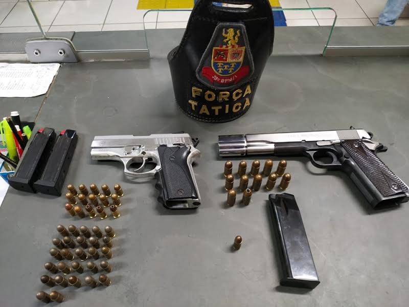 O indiciado informou que possuía documentação daquela arma, convidando a equipe para ir até a sua residência. Já na residência foi localizado sobre seu guarda roupas: uma pistola calibre 45, marca Colt, alimentada com 12 munições, bem como em um cofre 1 munição de calibre 9 mm, 27 munições calibre 380mm e carregador para pistola 380mm.