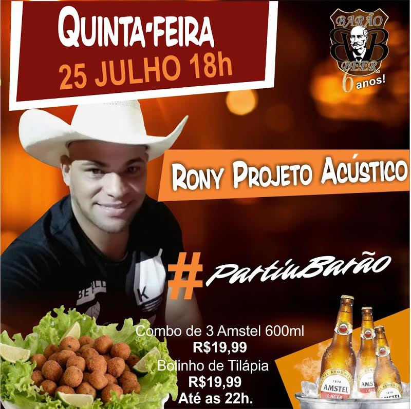 Quinta-feira 25-07 a partir das 18h00 animação com Rony Projeto Acústico
