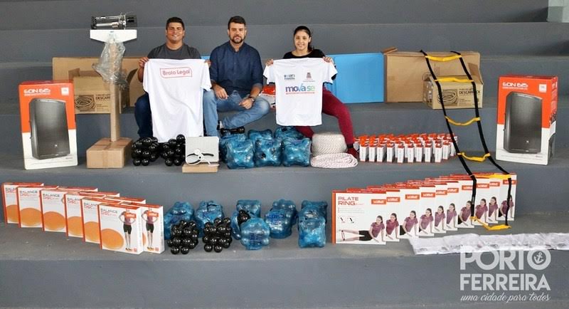 Entre os equipamentos doados estão caixas de som, balança mecânica com régua, adipômetro científico, escadas de agilidade, cordas, colchonetes, halters emborrachados, bolas overball, discos de equilíbrio, anéis tonificadores e camisetas, num total de quase 1,5 mil itens.