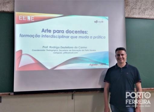 No último dia 10 de agosto o coordenador pedagógico da Secretaria de Educação de Porto Ferreira (Seduc), professor Rodrigo Destéfano do Carmo, apresentou o trabalho intitulado “Arte para docentes: formação interdisciplinar que muda a prática” no III Encontro de Ensino de Leitura e Escrita (EELE) da Universidade Federal de São Carlos (UFSCar).