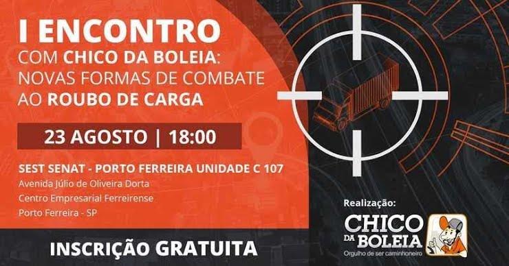 O município de Porto Ferreira será palco no próximo dia 23 de agosto do “I Encontro com Chico da Boleia: Novas Formas de Combate ao Roubo de Carga”, no auditório do Sest Senat, a partir das 18h, com entrada franca.