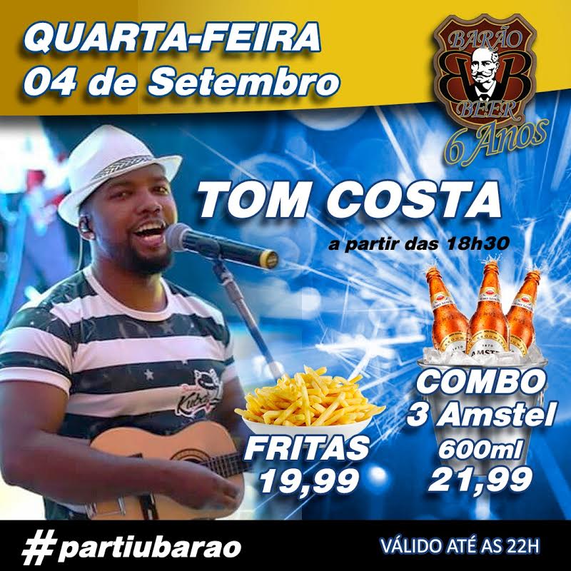 Barão Beer – Hoje quarta-feira (04) animação a partir das 18h30 com Tom Costa