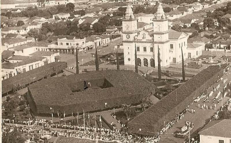 Foto: Praça Cornélio Procópio em 1960, aparentemente um desfile de 7 de setembro, acervo do Museu Histórico e Pedagógico “Prof. Flávio da Silva Oliveira”.