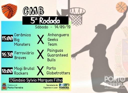 Neste sábado (14/09) acontece no Ginásio Municipal Sylvio Marques Filho, no Jardim Primavera, a quinta rodada do Campeonato Municipal de Basquete, organizado pela Secretaria de Esportes e Lazer da Prefeitura de Porto Ferreira.