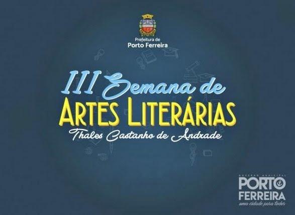 A Secretaria de Cultura de Porto Ferreira promove a partir de hoje a III Semana de Artes Literárias Thales Castanho de Andrade no Anfiteatro Isaltino Casemiro, a partir das 19h30. Além de hoje, segunda feira (16/09), teremos atividades na terça, quarta e quinta, entre os dia 16 e 19 de setembro.
