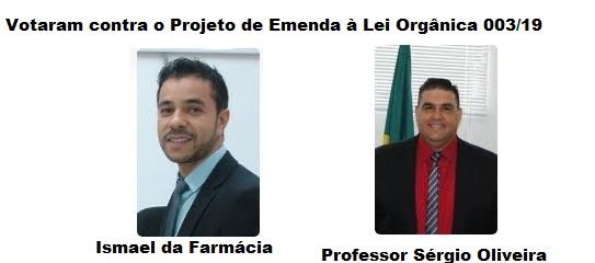 Os vereador Sérgio de Oliveira e Ismael da Farmácia votaram contra o Projeto, portanto o placar foi 9 a favor e 2 contra.