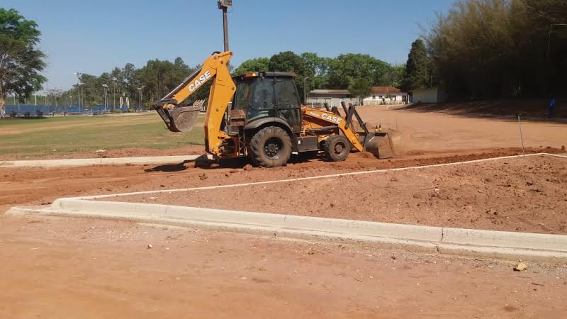 Os serviços de terraplanagem na estrada que passa por trás das quadras de tênis e segue para os campos de futebol 1 e 2, além da colocação de guias, já foram finalizados.
