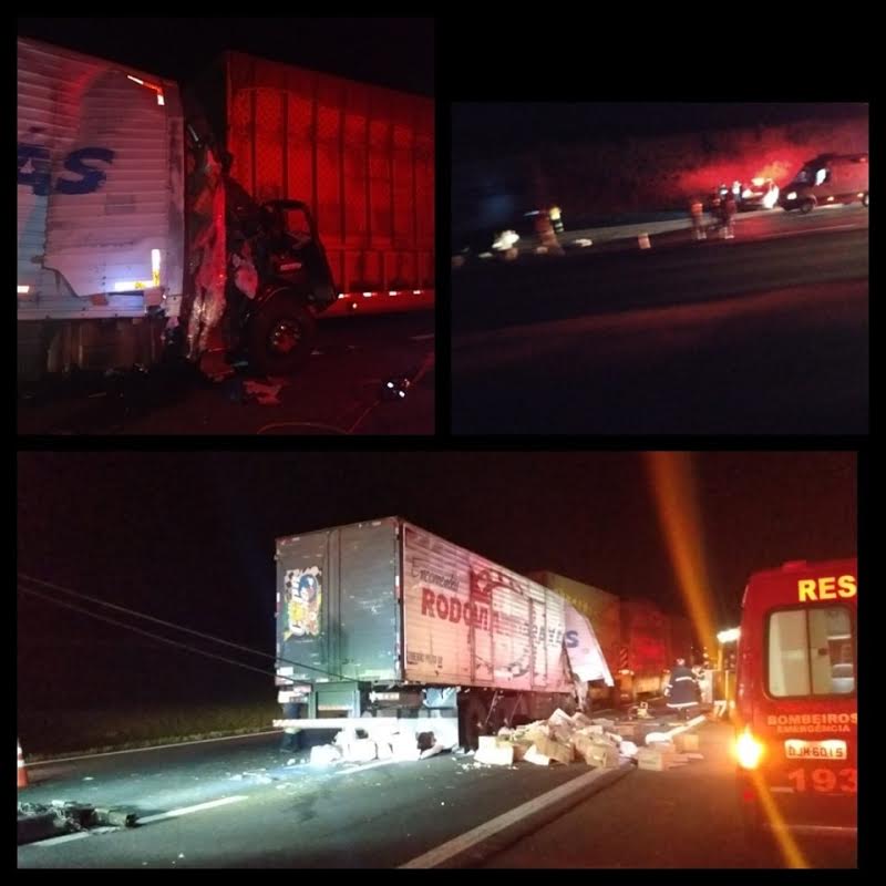 Um motorista de 41 anos morreu em um acidente entre dois caminhões na madrugada desta terça-feira (8), na Rodovia Anhanguera (SP-330), em Santa Rita do Passa Quatro .