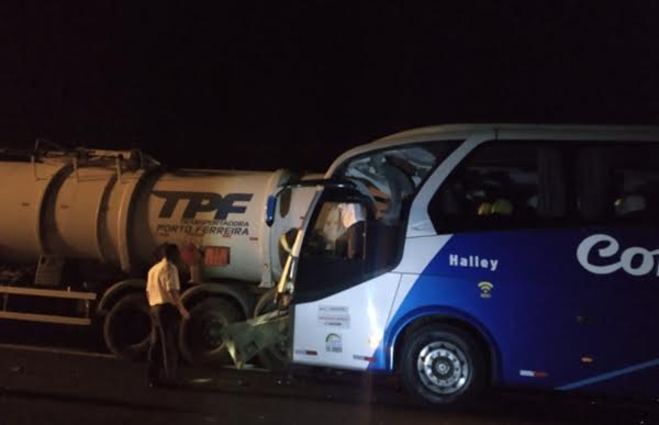 O ônibus da Viação Cometa, que tinha saído de Franca em direção à Campinas, acabou colidindo na traseira de um caminhão carregado com combustível da empresa TFP de Porto Ferreira.