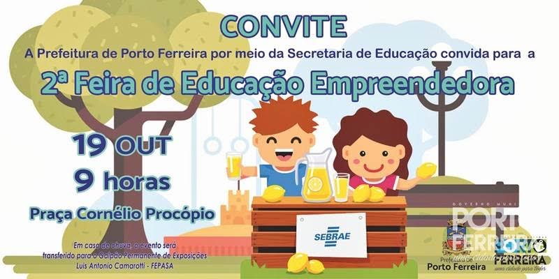 A Secretaria de Educação de Porto Ferreira vai realizar a segunda Feira de Educação Empreendedora neste sábado (19/10), das 9 às 12 horas, na praça Cornélio Procópio (central).