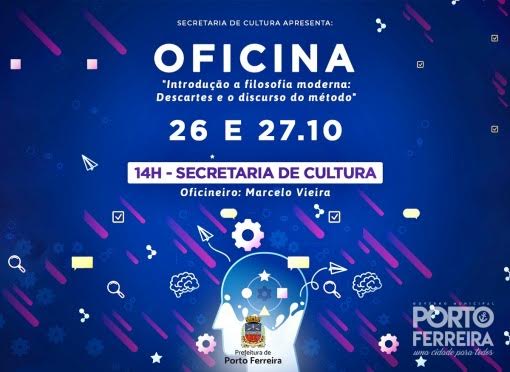 A Secretaria de Cultura de Porto Ferreira vai receber no próximo final de semana (dias 26 e 27/10) uma oficina sobre filosofia moderna, ministrada pelo mestrando em Filosofia Marcelo Vieira.