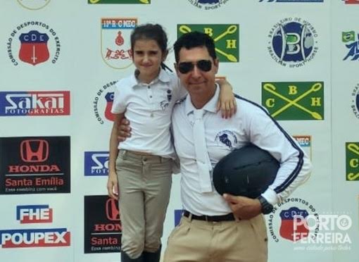 A garota competiu saltando na categoria de 80 cm e trouxe a medalha de segundo lugar para Porto Ferreira.