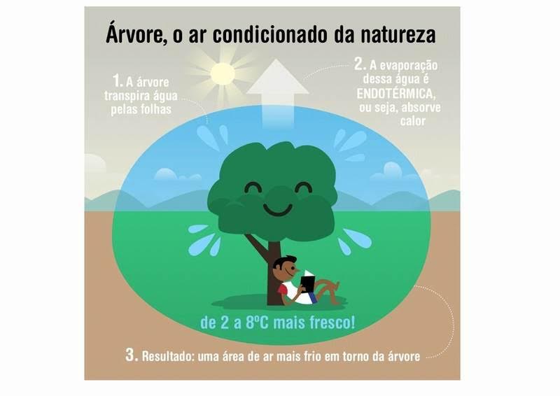 Elas umidificam o ar e filtram esse ar, retendo as partículas de poeira, os gases tóxicos, melhoram a condição térmica urbana e convidam as pessoas a usarem mais o espaço público para caminhar.