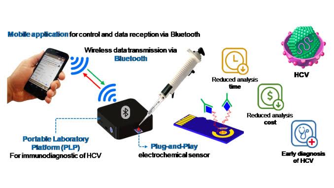 Um artigo de pesquisadores do Centro de Materiais Funcionais (CDMF), recém publicado no periódico IEEE Sensors Journal, relata o desenvolvimento de uma nova plataforma laboratorial portátil voltada ao imunodiagnóstico do vírus da Hepatite C.