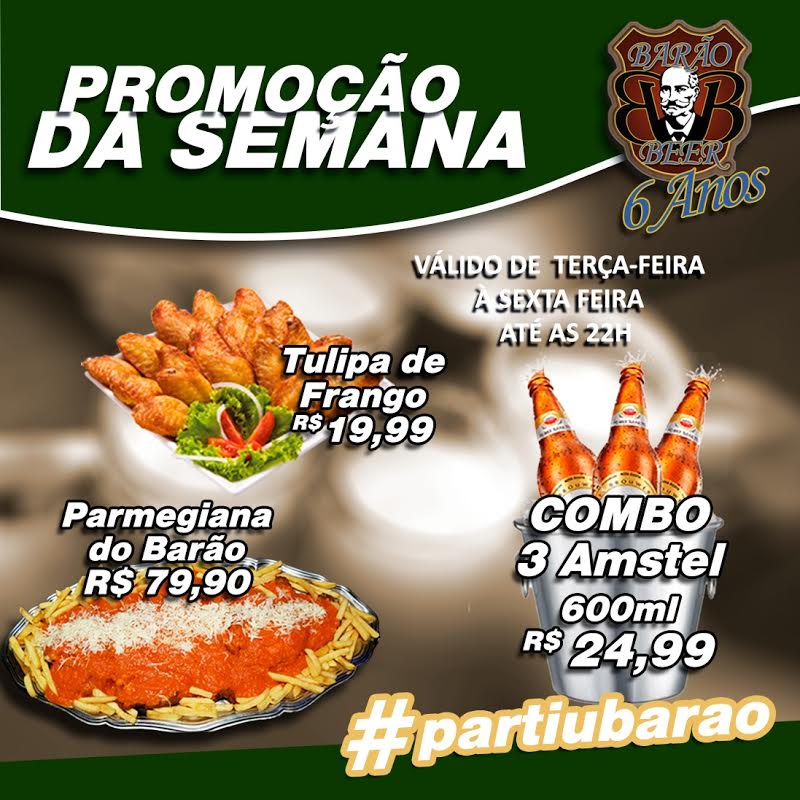 Quarta-feira (30) futebol ao vivo no Barão a partir das 19h30, chopp em dobro até o final da partida ( chopp skin 300ml)