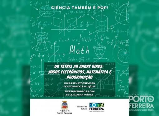 O projeto Ciência Também É Pop, da Secretaria de Cultura de Porto Ferreira, realizará mais uma edição nesta quinta-feira (31/10), com o tema “Jogos Eletrônicos, matemática e programação”.