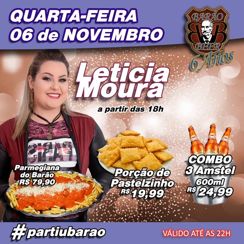 Barão Beer – hoje quarta-feira (06) animação de Leticia Moura a partir das 18h00!