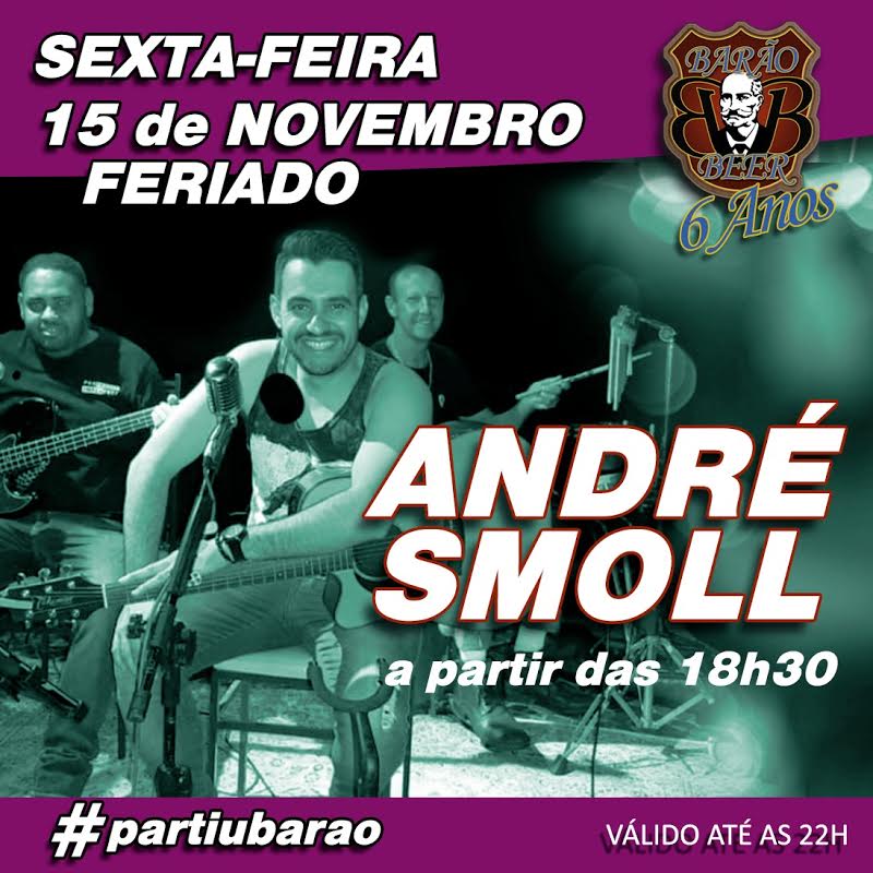Sexta-feira (15) feriado, Almoço especial a partir das 10h30, Chopp Skin por R$ 4,55 e Parmegiana por R$ 79,90, animação Pagode do Gui a partir da 15h00 e a partir das 18h00 André Smool "Todos os ritmos"