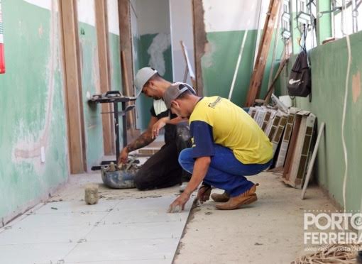 Após o término das obras de instalação dos novos padrões de energia elétrica da escola e de toda a rede elétrica, nos últimos dias tiveram início os serviços de alvenaria, como a colocação de piso cerâmico no lugar dos tacos de madeira, forros, entre outros.
