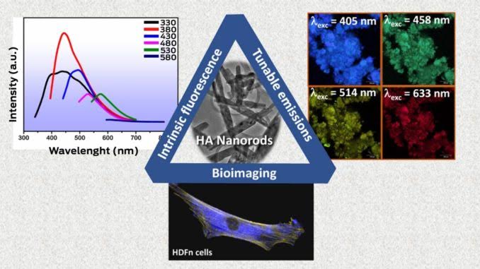 A imagem por fluorescência consiste em um dos métodos mais comuns em ciências biológicas para obter informações detalhadas de estruturas e eventos intracelulares de maneira específica e em alta resolução. No estudo publicado, propõe-se que as nanopartículas preparadas pelo grupo poderiam ser utilizadas como agente de contraste para a realização de procedimentos de bioimagem por fluorescência. Segundo os testes in vitro realizados utilizando como modelo culturas de fibroblastos dérmicos humanos neonatais (HDFn), as nanopartículas possuem alta capacidade de internalização na região citoplasmática sem que ocorram danos as células. Uma vez dentro das células, a hidroxiapatita emite fluorescência de cores azul, verde, amarelo e vermelho, evidenciando distintas estruturas celulares. Esta característica é fundamental para potenciais procedimentos biomédicos de obtenção de imagem multicor, sendo este um novo fenômeno observado para o material.