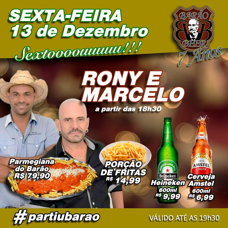 Barão Beer – Sexta-feira (13) animação a partir das 18h30 show com Rony e Marcelo