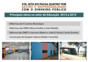 Com situação financeira estável, a Prefeitura santa-ritense se mantém em dia pagamentos de servidores e fornecedores de produtos e serviços. Além disso, nos últimos, também pode aplicar seus recursos em Educação, superando o que determina a Constituição Federal, de que os municípios devem aplicar, no mínimo, 25% de sua receita no ensino.