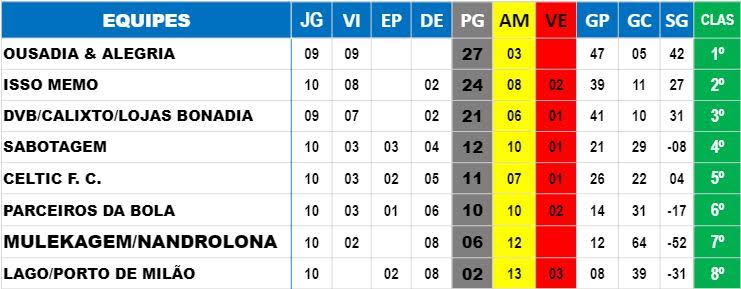 Confira abaixo os jogos da 11ª rodada e veja na imagem classificação geral.