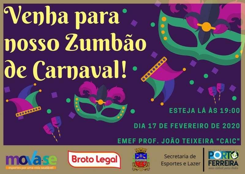 Acontece nesta segunda-feira, 17 de fevereiro, o primeiro “Zumbão” do ano. O evento é organizado pela Secretaria de Esportes e Lazer do município através do projeto Mova-se com as professoras Jaqueline Matias e Juliana Campos Alexandrino.